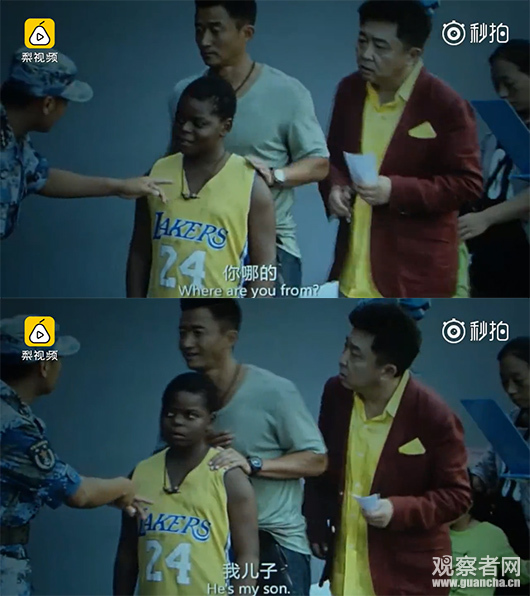 尤其是在登船檢查的時候,由於他是一名黑人,遭到中國海軍的阻撓和盤查,吳京急中生智説:這是我兒子,引發全場爆笑。