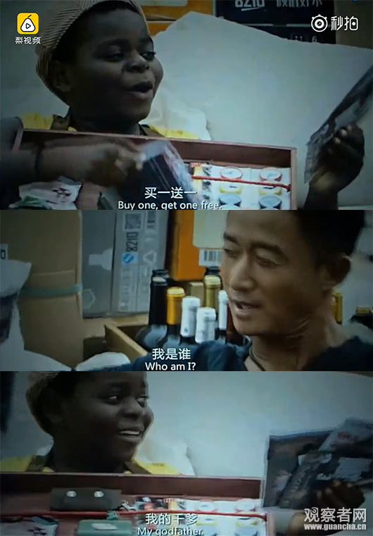 《戰狼2》中,Tundu一句中英文混雜的“you are my 乾爹”承包了全片笑點。