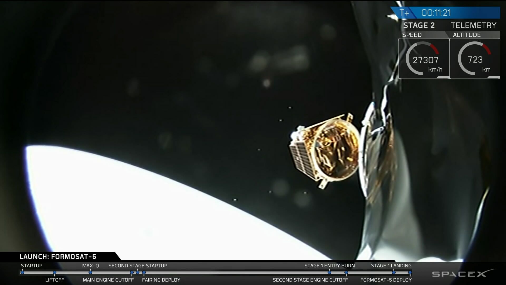 台灣首顆自主研製衞星“台衞五號”在美升空