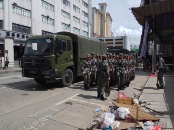 香港橙新聞報道稱,25日上午,有大約800名駐澳部隊官兵來到佈滿垃圾的“十月初五街”進行救災行動。