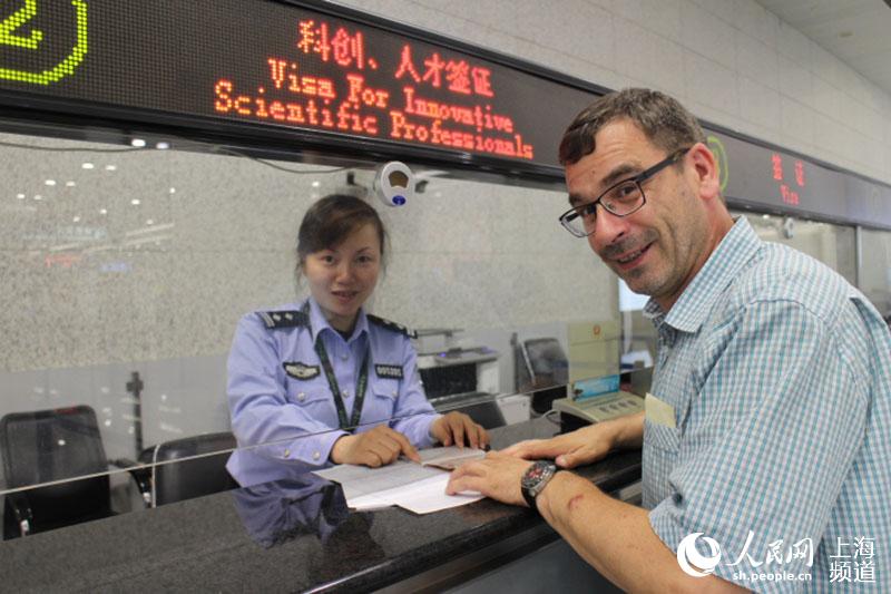 2015年7月,來自奧地利的愛德華在上海浦東機場的“科創、人才簽證”窗口,拿到了上海科創中心建設出入境新政出台後的第一張R字(人才)口岸簽證
