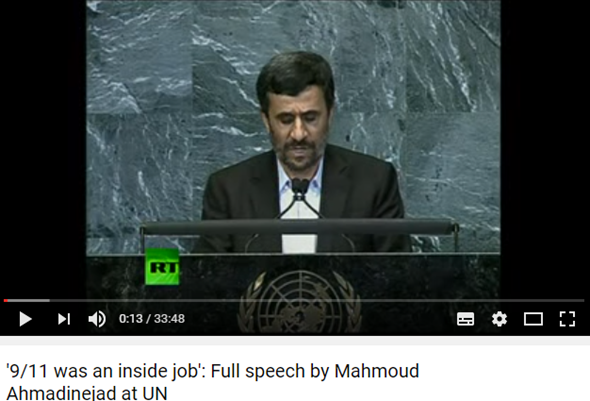 2010年9月,伊朗總統內賈德在聯合國例會上痛斥美國對伊不友好的一系列行動,並且認為“911”事件是美國自導自演的“陰謀劇”