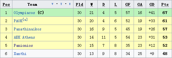 帕尼奧尼奧斯排名上賽季希臘聯賽的第五名