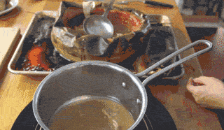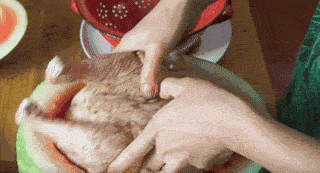 鼓起肚子的雞做醬油Spa,撒上一款中國神奇調味料,蜷縮的雞有了自己的味道,然後把雞折入西瓜。