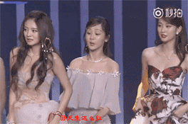 楊紫和喬欣一開始站在靠邊的位置想往中間去,但是安以軒擋在旁邊,於是楊紫在後面一直做着催促的小動作,喬欣也提着裙子不知道該走還是停。