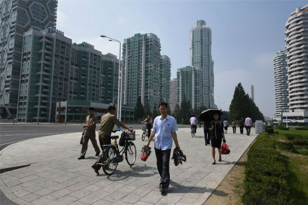 最近,平壤各地都有拆遷和建造新樓房的工地,可以用大興土木來形容,認為在不久的將來平壤有形成一個房地產市場的趨勢也不誇張。