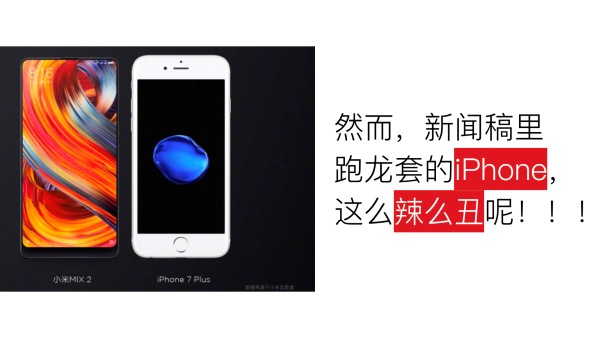 此外,在宣傳上,小米的也玩了一些小花招。在PPT上美化了自家的手機,對蘋果手機則沒有進行同步美化。