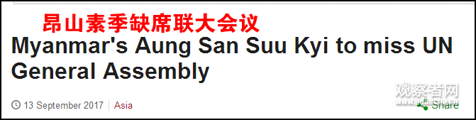 BBC稱,緬甸政府的發言人表示,“國務資政(注:昂山素季的官職)將不會參加”聯大會議,但是拒絕給出外界更多的信息。