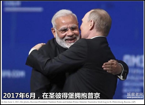 在今年6月訪問聖彼得堡期間,莫迪和普京以一個擁抱彰顯兩國間的牢固關係。