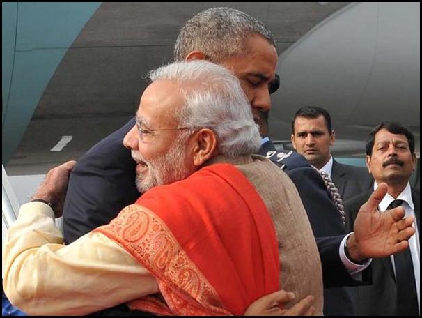 當然,特朗普也並不是莫迪第一個抱過的美國總統,奧巴馬每次見莫迪,都要領教他熱情的懷抱,比如這次緊擁(2015年印度國慶日):