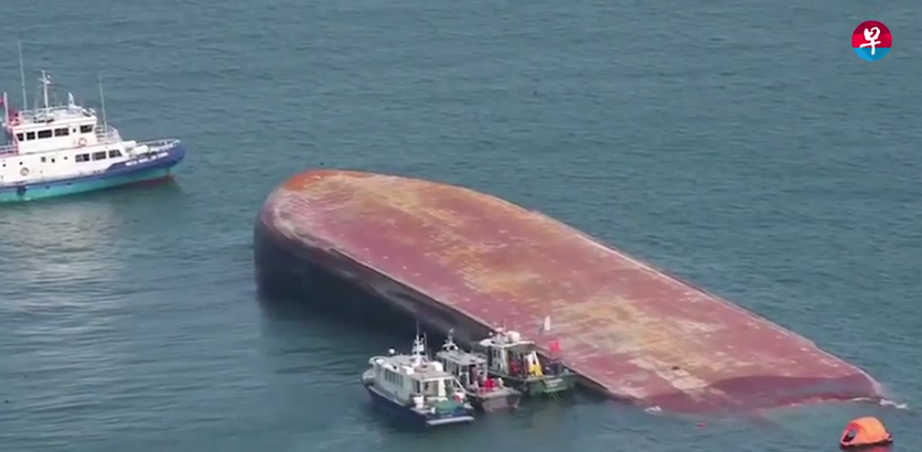 新加坡海域撞船:傾覆的挖泥船上11名中國船員,7人獲救1人遇難