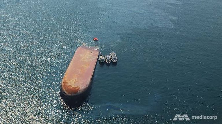 發生事故的油槽船/截圖來自新加坡8頻道新聞及時事節目