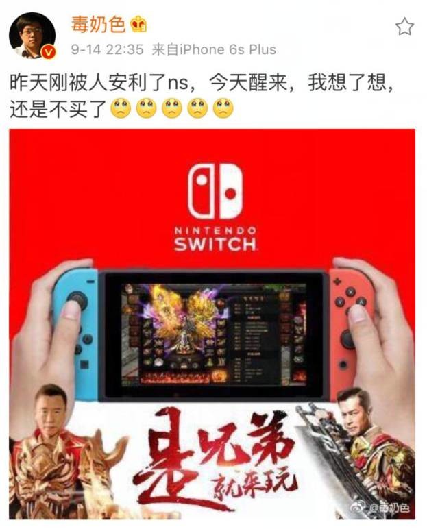 有人將其調侃為任天堂墮落的開始,並P圖為樂,比如黃旭東就發了這麼一張網友P圖,比喻之後將會有更Low(屠龍寶刀點擊就送)的傳奇頁遊登錄NS。