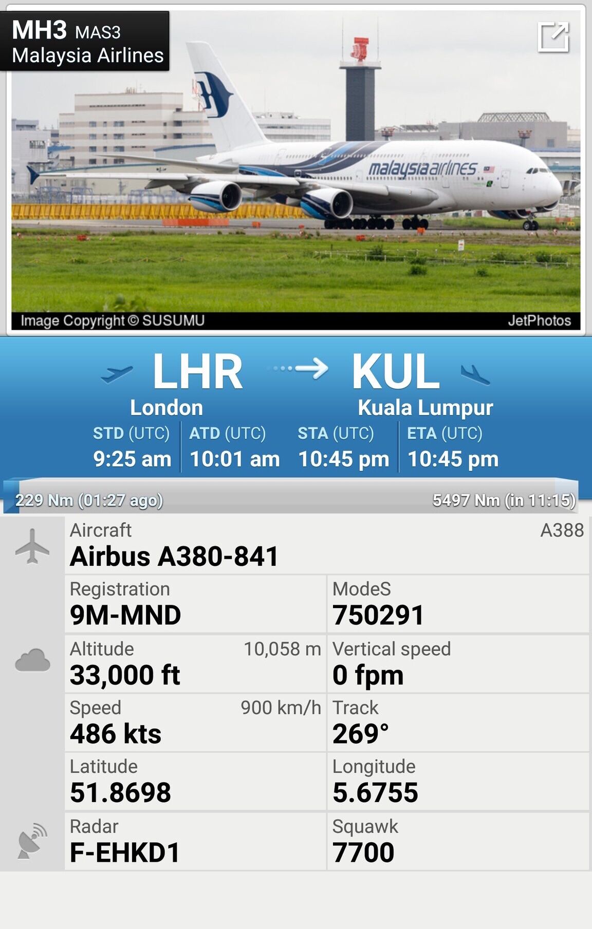 海外網9月15日援引航空網站flightradar24消息稱,馬來西亞航空MH3(倫敦-吉隆坡)緊急返航中,原因暫時不明。