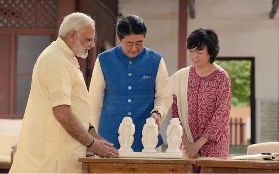 當然,莫迪之所以盛情接待安倍夫婦,在筆者看來不外乎有兩點原因。一來,安倍首相此次訪問為印度,或者更進一步説是為莫迪的家鄉艾哈邁達巴德帶去了低利息的新幹線項目,並且還同意向印度出口核技術、投資印度基建等,這對於莫迪政權而言無疑是一大政績。因此,為了獲得日本今後更多的資金與技術支持,莫迪必須在外交禮儀中給足安倍面子。