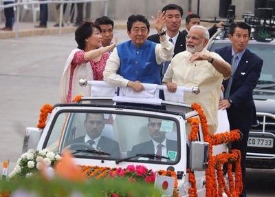儘管自2012年再度擔任首相以來,安倍晉三相繼訪問了許多國家,但似乎只有在印度受到了頗高規格的接待。比如,莫迪安排了一個長達8公里的公路表演歡迎安倍夫婦的到訪,親自陪同安倍夫婦參觀甘地紀念館並向甘地像獻花,以及從9月12日-15日連續發佈了22條有關安倍晉三到訪的推文(包括日文)等。