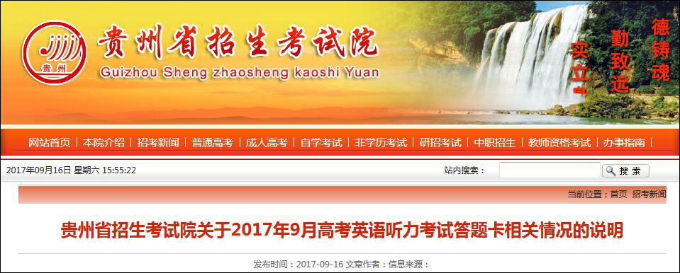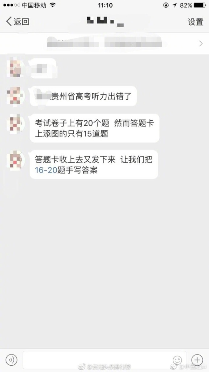 網友爆料貴州9月高考英語聽力考試答題卡出錯 20個題僅15個選項