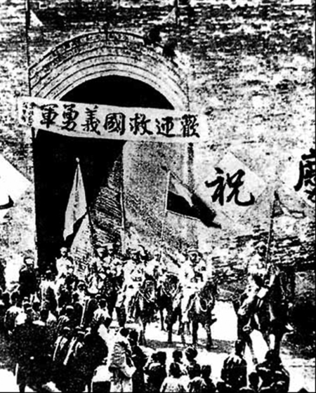 四是農民的秘密會社。原在豫東、魯南一帶的大刀會、紅槍會等秘密會社,隨着這些地區農民“闖關東”,發展到了東北各地。東北陷落後,有的農民不甘日軍蹂躪,就以這類會社為基礎迅速組織起武裝,加入各部投身抗日。如唐聚五、王德林等部,就先後吸納了各地大量的紅槍會、大刀會等民間組織。