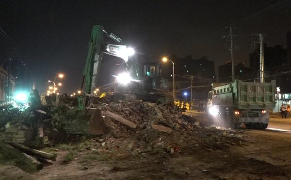 整個房屋的拆除工作耗時約90分鐘。其間,兩支高壓水槍一直在往建築內噴水,以減少拆除時產生的灰塵。大約從1點25分開始,土方車開始將廢渣陸續運走,松江區九里亭街道動遷辦主任陸輝對澎湃新聞記者介紹,清運工作會持續到18日早6時。拆除期間,滬亭北路從18日0點到2點實施封路。
