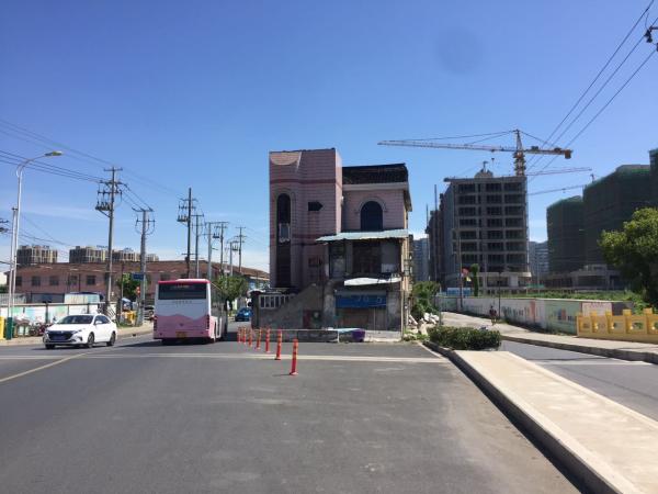 在馬路中間的破舊房屋,不僅影響城市美觀,對交通也造成了不小的影響。