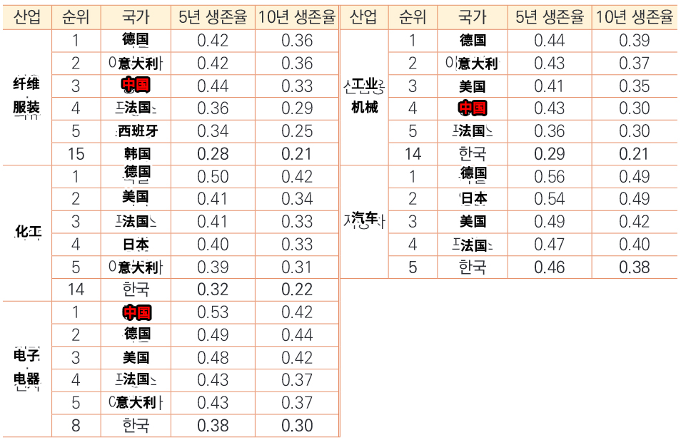 報告指出,韓國商品的5年出口存活率有30%,相比而言,中國有43%、美國39%、日本35%。