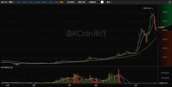 比特幣周線圖(人民幣計價,2016年12月至今)