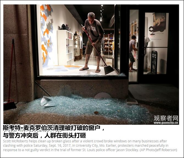 美國密蘇里州聖路易斯市白人警員斯托克利(Jason Stockley)2011年槍殺一名黑人,當地時間9月15日,聖路易斯法庭宣判斯托克利無罪,引發當地抗議活動。