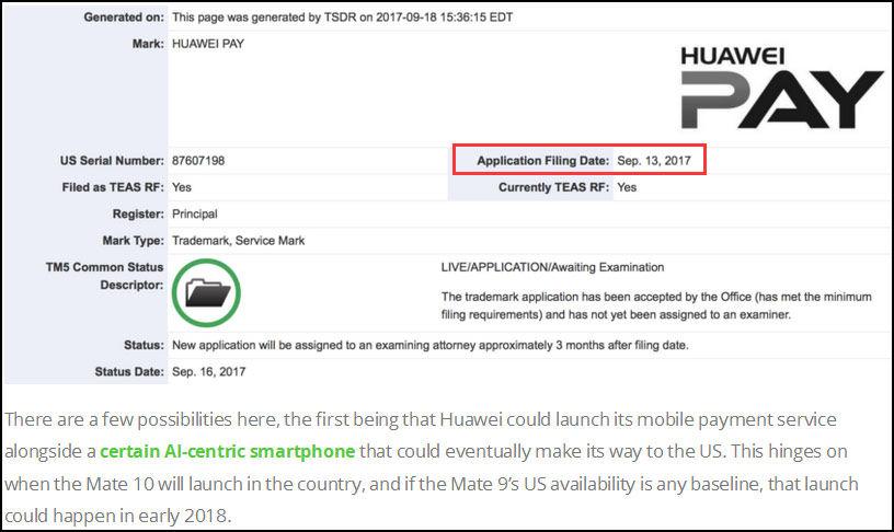 據美媒報道,華為9月13日向美國專利商標局(USPTO)提交了Huawei Pay的專利申請,Huawei Pay或將於今年年底登陸美國。
