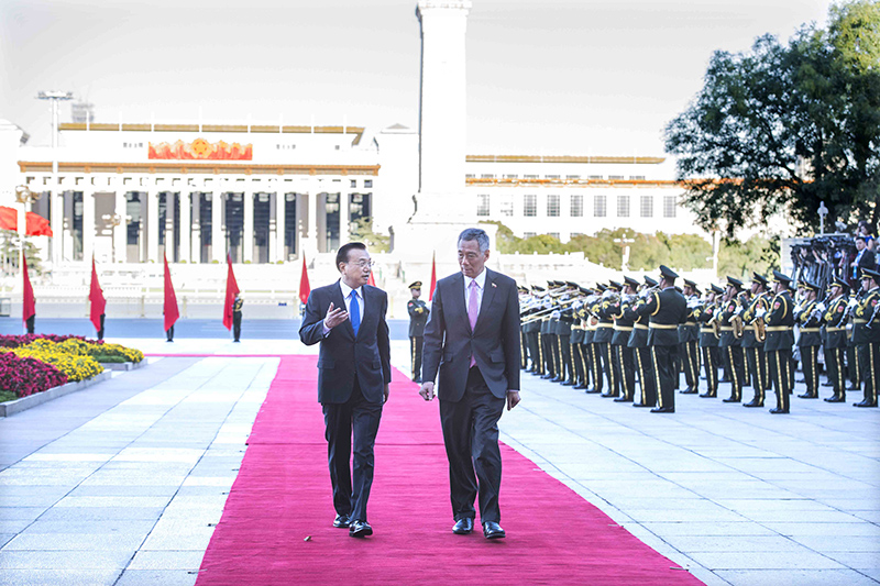 據中國政府網19日消息,國務院總理李克強9月19日下午在人民大會堂同來華進行正式訪問的新加坡總理李顯龍舉行會談。