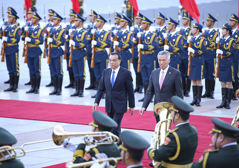 會談前,李克強在人民大會堂東門外廣場為李顯龍舉行歡迎儀式。全國政協副主席陳曉光等出席。