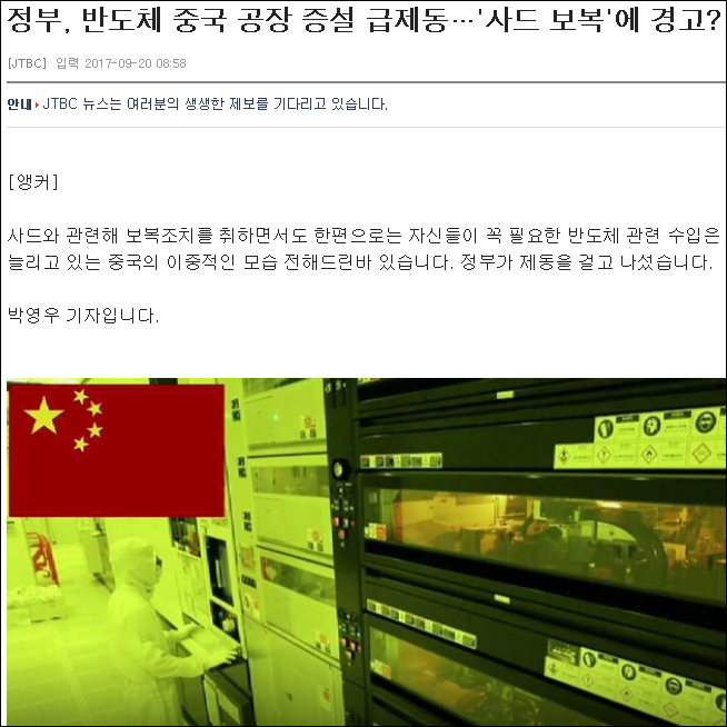 【文/觀察者網 李煥宇】自中韓薩德風波以來,韓國商品的對華出口就屢屢碰壁,但有一個行業例外——半導體。如今,韓政府終於決定要在這上面做文章了,據韓《中央日報》旗下JTBC電視台9月20日報道,出於技術保密考慮,韓政府決定禁止韓國半導體企業在中國開設新廠。