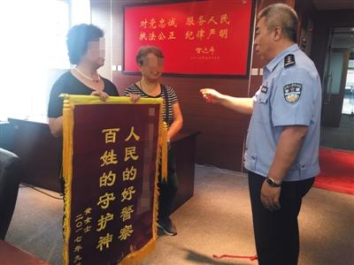 昨日,險遭電信詐騙的黃女士前往北京市公安局,向民警贈送錦旗表達謝意。 警方供圖
