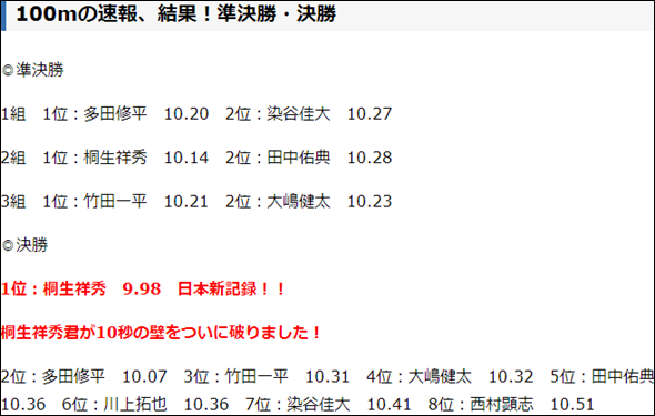 不過意外的是國內某些媒體的報道和評論,曾經用“日本短跑崛起”、“中國需居安思危”等字眼形容中日兩國的男子短跑比拼。很遺憾,這是相當外行的評論。