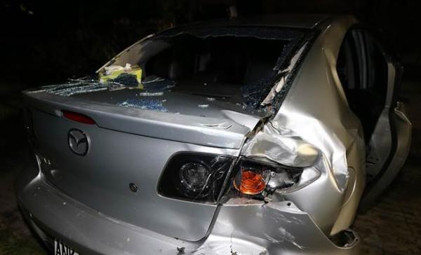 朱姓男子嚇得立即駕車轉到對向車道,因太驚慌車子衝撞路旁的路標杆、毀損嚴重。另一名正巧開車經過的林姓女子(39歲)也遭受波及,其肚皮被子彈擦傷。