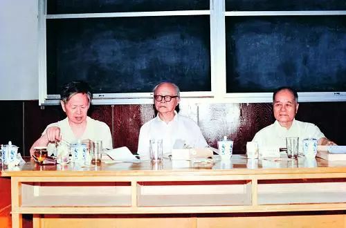 程開甲(右)與王淦昌(中)、呂敏(左)一起參加會議。