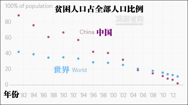 文章稱,自從中國上世紀70年代末開始推行市場改革以來,它已經讓超過8億人脱貧。根據世界銀行設定的最新生活費基準,中國的貧困率已經從1981年的超過80%降至目前的約2%。