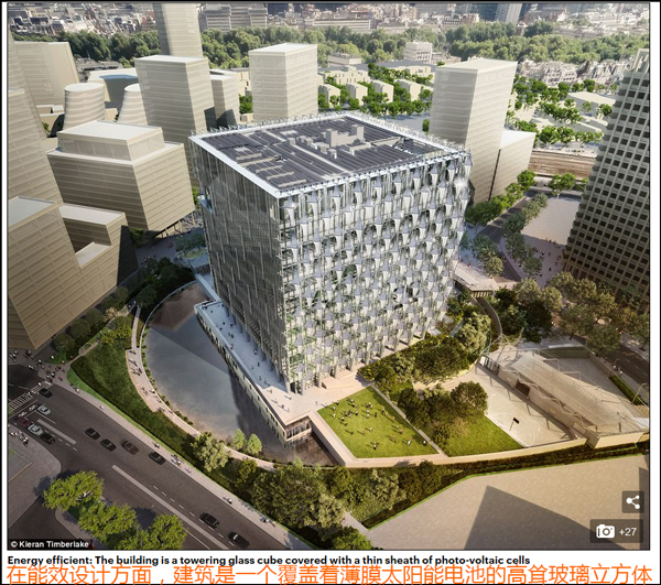 除了安全性,新館也突出了低碳環保的理念,幾乎可以實現能源的自給自足,甚至在斷電的情況下也能“長期”運轉。在能效設計方面,建築是一個覆蓋着薄膜太陽能電池的高聳玻璃立方體。歸功於敷設在外立面的船帆樣輕質濾光材料,這座玻璃大樓不像一般同類建築那樣稜角分明,反而給人一種“大枕頭”般的柔軟感。就像遮光劑一樣,透過這種材料,陽光射入大樓,但是裏面強化過的深色玻璃會把熱量隔絕在室外,保證大樓內部既明亮又涼爽。(小編想,這不就是給大樓帶了個墨鏡嘛,光進來,熱擋住!)