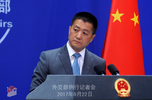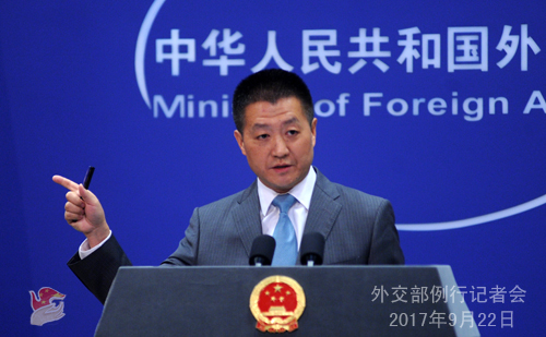 央視新聞客户端9月22日消息,朝鮮方面21日晚間發表聲明,稱將慎重考慮採取史上最高級別的應對措施,以回應美國總統特朗普此前發表的有關“徹底摧毀朝鮮”的言論。對此外交部發言人陸慷在今天的例行記者會上表示,中方呼籲半島直接當事方停止相互刺激、火上澆油。