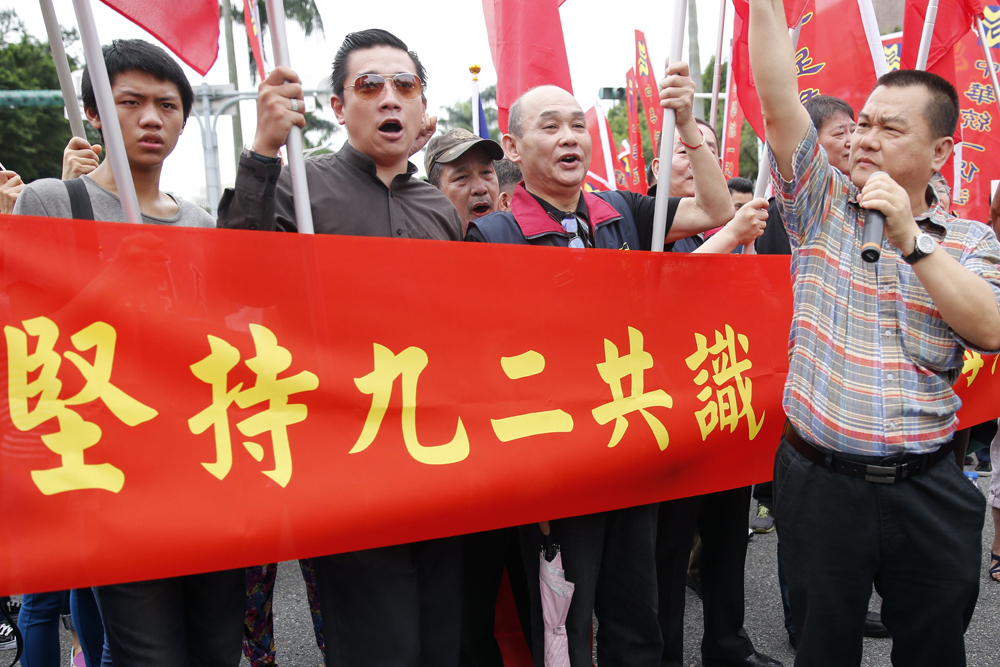 台灣民眾打出“堅持九二共識”等標語 圖片來源:大公網