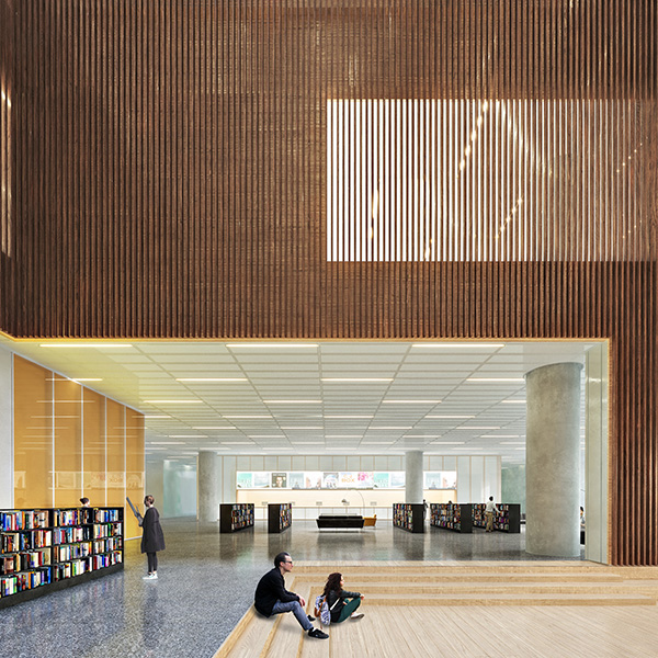 除了“開放”樓層和中庭空間外,上圖東館還將沿建築外立面設置一系列開放閲讀空間,使讀者們可以從圖書館內不同的位置,看到他們所在的這座城市。