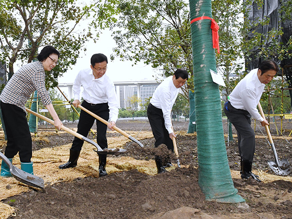 韓正參加世博文化公園植樹活動:為文化體育設施項目貢獻力量