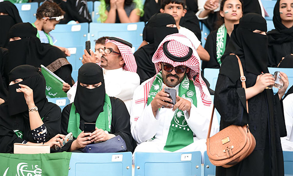 沙特國慶日迎來一“歷史性”時刻:體育場首次聽到女性歡呼聲