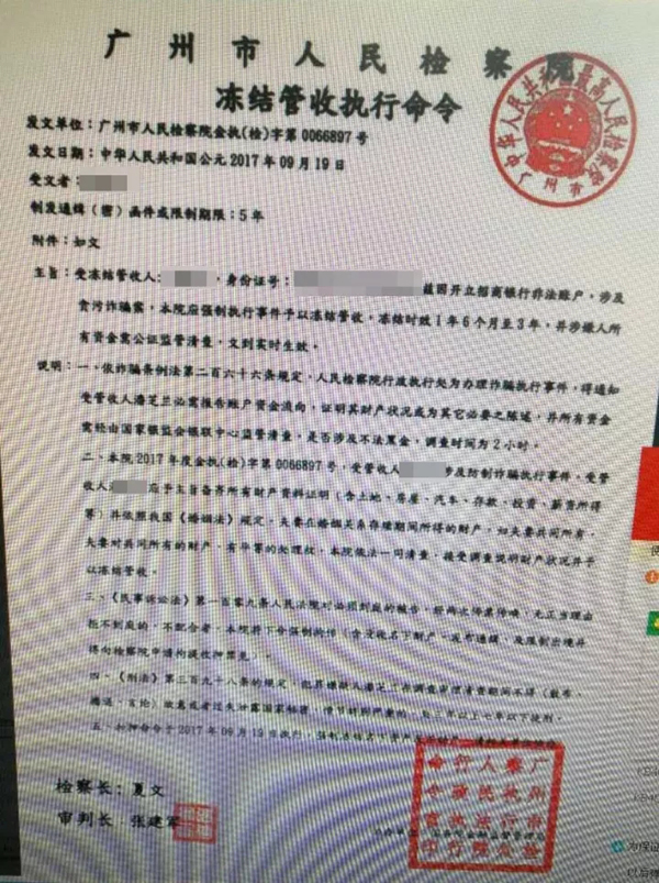 李大姐收到的“廣州市人民檢察院財產管收執行命令”。