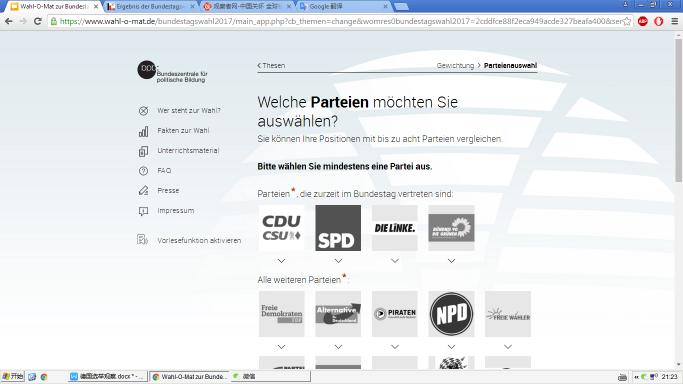 在2002年,德國聯邦政治教育中心設立了Wahl-O-Mat 網站,主要針對年輕人,特別是初次參加選舉的人羣。該網站提出了38個論點,使用者可以選擇同意、中立和反對,最後網站根據使用者的選擇給出推薦的政黨。