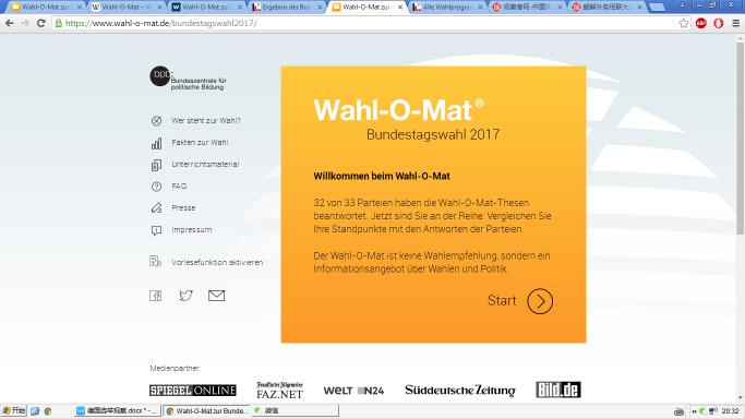 德國聯邦政治教育中心設立的Wahl-O-Mat 網站。圖片來源:作者截圖