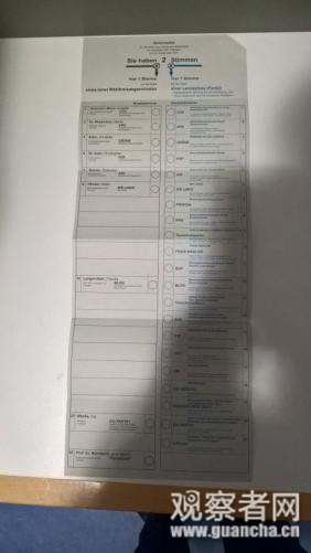 德國國會大選選票,左側為本地候選人區,右側為政黨區。圖片來源:作者供圖