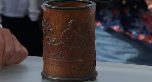 18世紀清代竹筆筒,紫檀底座,2013年節目專家估價6000-8000英鎊。