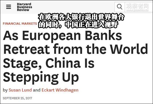 當地時間25日,美國《哈佛商業評論》發表題為《在歐洲各大銀行退出世界舞台的同時,中國正在進入視野》