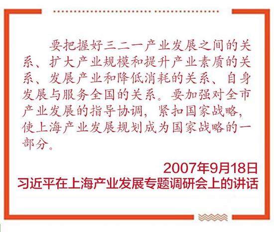 當時習近平明確提出,上海要推動三二一產業共同發展,在加快服務業發展中推進結構調整。