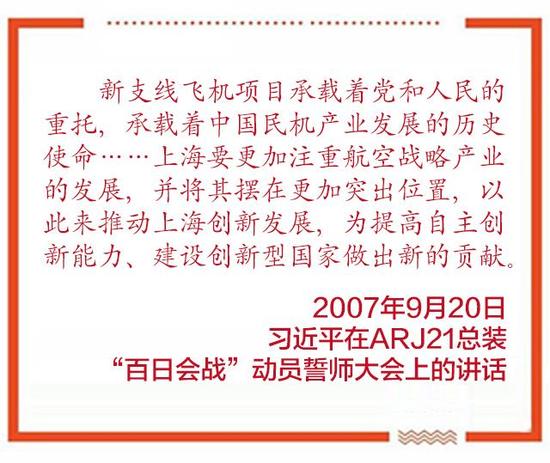 為了確保2008年ARJ21進行首飛,2007年9月20日,中航工業組織了ARJ21總裝“百日會戰”誓師大會,習近平參加了這場大會。